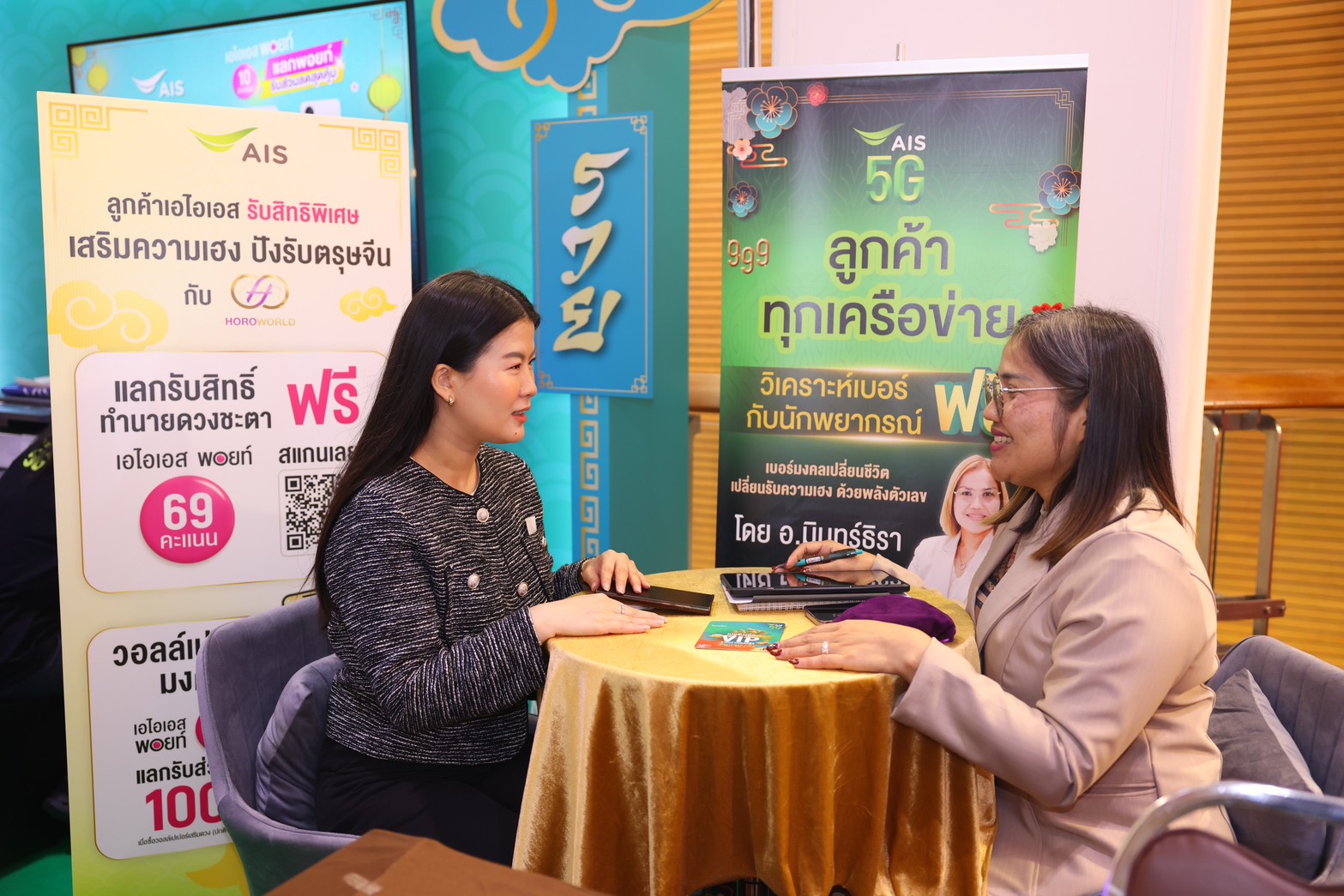 พิเศษสำหรับลูกค้าเอไอเอส สามารถใช้คะแนน AIS Points แลกรับสิทธิพิ เศษหลากหลายภายในงาน อาทิ ใช้ 40 คะแนน แลกรับอั่งเปาแทนส่วนลดมูลค่า 40 บาท สำหรับร้านค้าภายในงาน, ใช้ 69 คะแนน แลกรับสิทธิ์ทำนายดวงชะตากับนั กพยากรณ์จาก HORO WORLD หรือ ใช้ 69 คะแนน แลกรับสิทธิ์ร่วมกิจกรรม “จุ่มพาเฮง” รับแผ่นทองมงคล ผ่านพิธีพุทธาภิเษกจากวัดมั งกรกมลาวาส (เล่งเน่ยยี่ 1) และอีกมากมาย