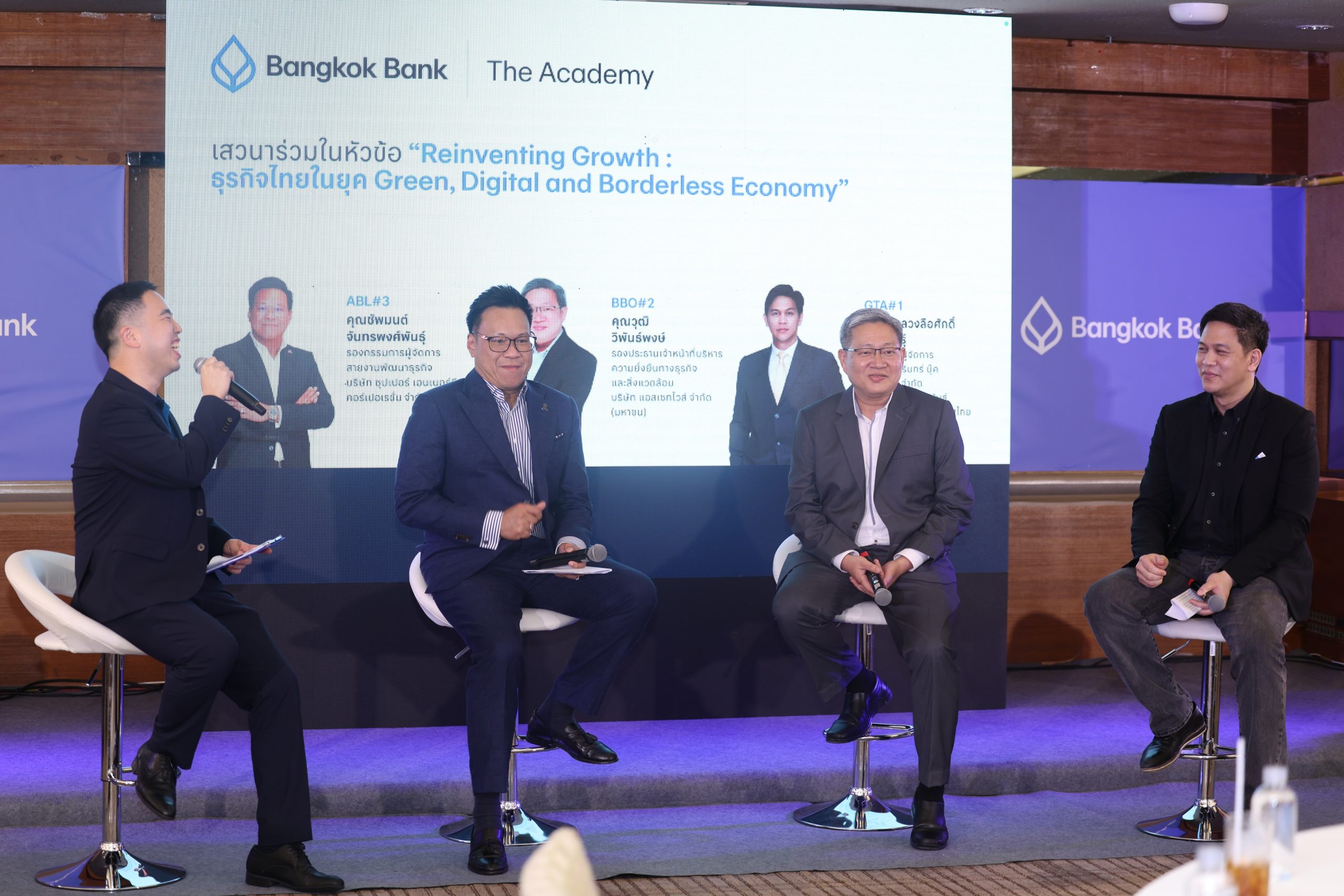 ดร.กอบศักดิ์ ภูตระกูล กรรมการรองผู้จัดการใหญ่ ปาฐกถาพิเศษในหัวข้อ “ทิศทางเศรษฐกิจไทยหลังการเลือกตั้งปี 2569” นำเสนอภาพรวม โอกาส และบทบาทของภาคธุรกิจ ในการขับเคลื่อนเศรษฐกิจไทยท่ามกลางพลวัตสังคมโลก การบรรยายพิเศษในหัวข้อ “เทรนด์และโอกาสการลงทุนในเทคโนโลยีดิจิทัลและเทคโนโลยีสีเขียว” โดยดร.ธนาวุฒิ พรโรจนางกูร Co-Chief Investment Officer กองทุนบัวหลวง บริษัทหลักทรัพย์จัดการกองทุนรวม บัวหลวง จำกัด เจาะลึกแนวโน้มสำคัญด้าน Digital & Green Transformation ซึ่งรวมถึงพัฒนาการของเทคโนโลยีแต่ละด้าน ทิศทางการลงทุนของบริษัทเทคโนโลยี และโอกาสการลงทุนที่เกี่ยวข้อง พร้อมเวทีเสวนาที่ได้รับความสนใจอย่างมาก “Reinventing Growth : ธุรกิจไทยในยุค Green, Digital and Borderless Economy” โดยผู้บริหารจาก 3 อุตสาหกรรมชั้นนำมาร่วมสะท้อนมุมมองการเติบโตในโลกธุรกิจ ไร้พรมแดน โดยเฉพาะในตลาด ASEAN ที่กำลังเติบโต การรับมือ Digital Disruption และการปรับตัวสู่เศรษฐกิจสีเขียว เมื่อวันที่ 13 กุมภาพันธ์ 2569 ที่ผ่านมา ที่ ธนาคารกรุงเทพ สำนักงานใหญ่ สีลม โดยมี