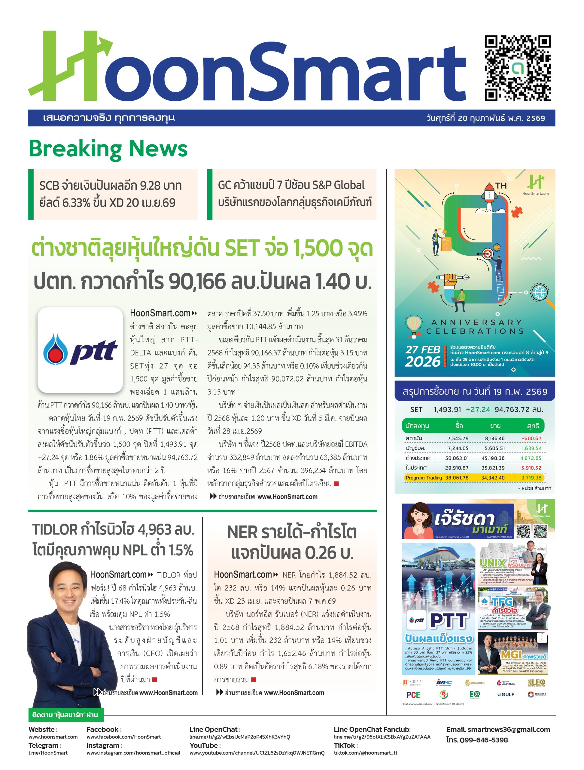 หนังสือพิมพ์ HoonSmart ก้าวสู่ปีที่ 9 ฉบับวันที่ 20 ก.พ. 2569