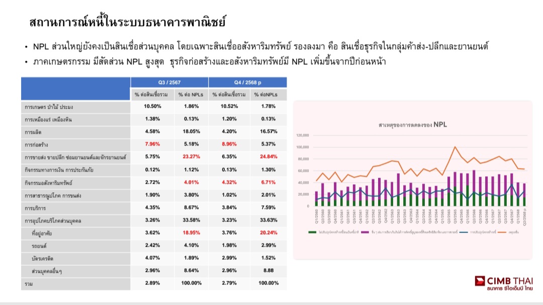 ทั้งนี้ จากการที่สภาพัฒน์ฯรายงานการเติบโตของผลิตภัณฑ์มวลรวมในประเทศ (GDP) ปี 2568 ที่ 2.4% CIMB THAI ได้ปรับมุมมองการคาดการณ์ GDP ปี 2569 ที่ 2.1% จากเดิมที่ 1.6% โดยมองว่าเศรษฐกิจช่วงครึ่งแรกของปี มีแนวโน้มเติบโตในระดับจำกัด จากการขาดมาตรการกระตุ้นทางการคลัง และภาคการลงทุนโดยตรงจากต่างประเทศยังอยู่ในโหมด “รอดูสถานการณ์” ท่ามกลางความไม่แน่นอนเชิงนโยบาย