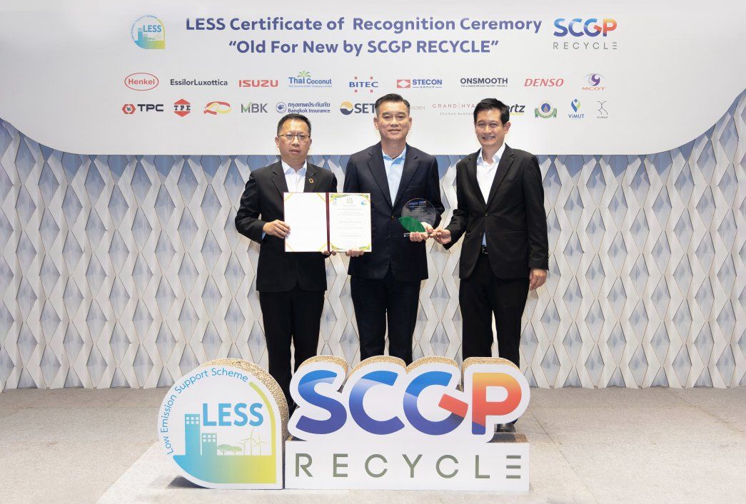 บริษัท กรุงเทพประกันภัย โดยนายพิสิฐ คิดเจริญสุข (กลาง) รองผู้อำนวยการอาวุโส ฝ่ายสินไหมทดแทนยานยนต์ เป็นผู้แทนบริษัทฯ รับมอบโล่พร้อมใบประกาศเกียรติคุณ โครงการสนับสนุนกิจกรรมลดก๊าซเรือนกระจก (Low Emission Support Scheme: LESS) ภายใต้โครงการ “Old For New โดย SCGP RECYCLE” ในพิธีมอบใบประกาศเกียรติคุณภายใต้โครงการสนับสนุนกิจกรรมลดก๊าซเรือนกระจก