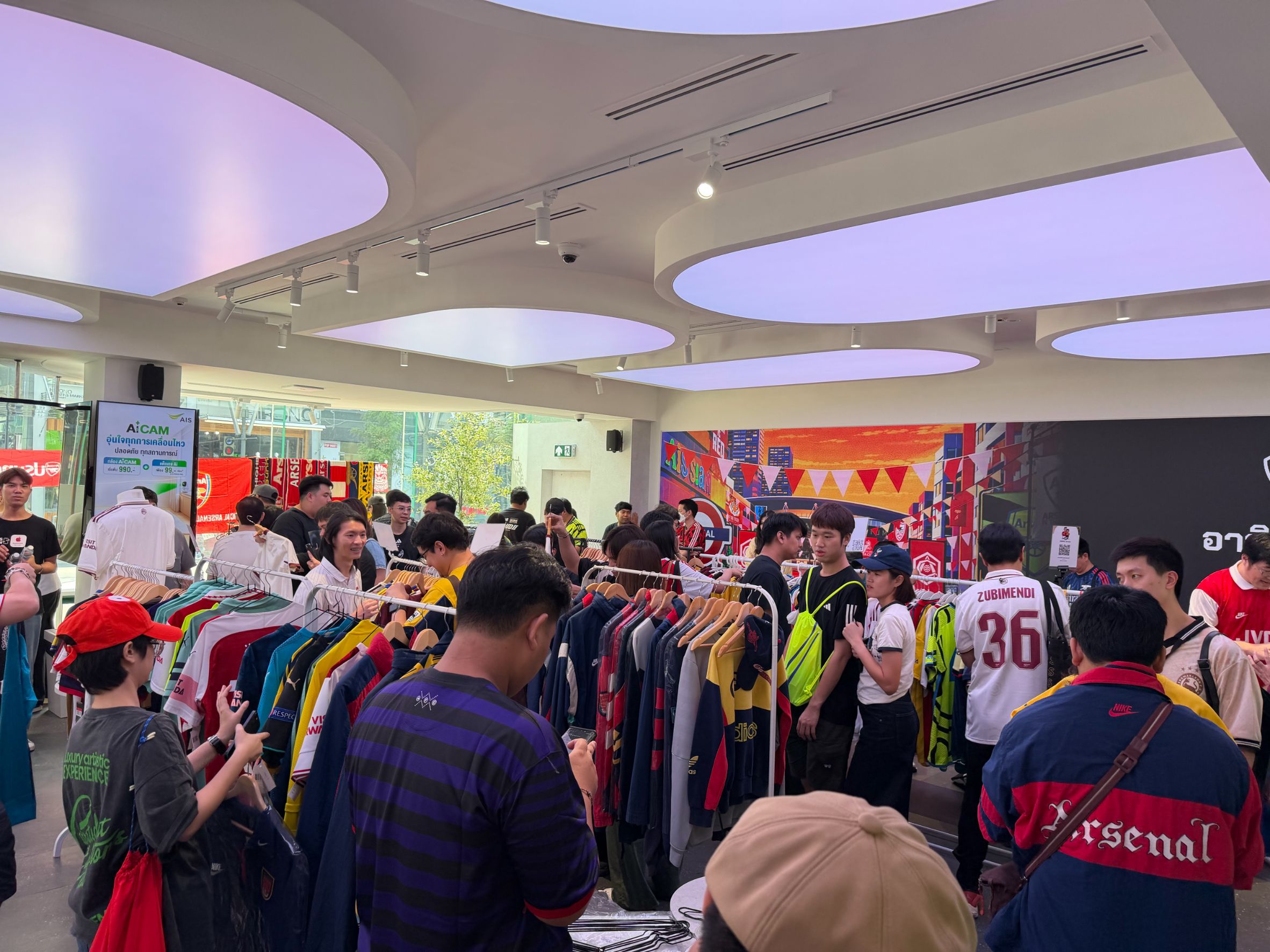 ความพิเศษของงานในครั้งนี้ เริ่มต้นความคึกคักตั้งแต่ช่วงกลางวันด้วย Arsenal Flea Market ตลาดนัดของสะสมที่แฟนปืนใหญ่ต้องมี ทั้งเสื้อบอลหายาก เสื้อยืด Fan-made ของสะสม และไอเทมสาย Gooner เพียบ