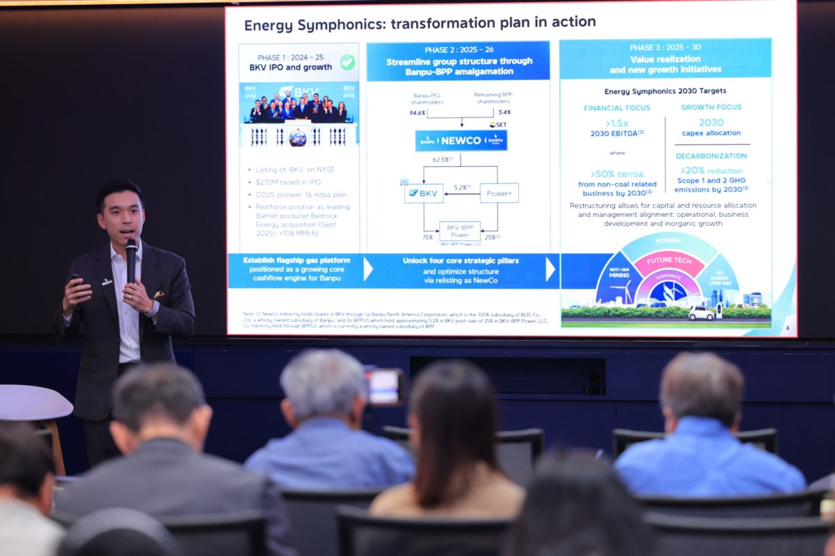 นายสินนท์ กล่าวถึงโรดแมปการปรับโครงสร้างบริษัทสู่ บ้านปู (นิวโค) หรือ BANPU (NewCo) ภายใต้กลยุทธ์ Energy Symphonic ว่าการปรับโครงสร้างครั้งนี้ช่วยเพิ่มความยืดหยุ่นให้กับองค์กร โดยในเฟสแรกเมื่อปี 2567 บ้านปูได้ทำ IPO บริษัท BKV เข้าตลาดหลักทรัพย์สหรัฐฯ ถือเป็นจุดเริ่มต้นของการขยายธุรกิจแก๊ส