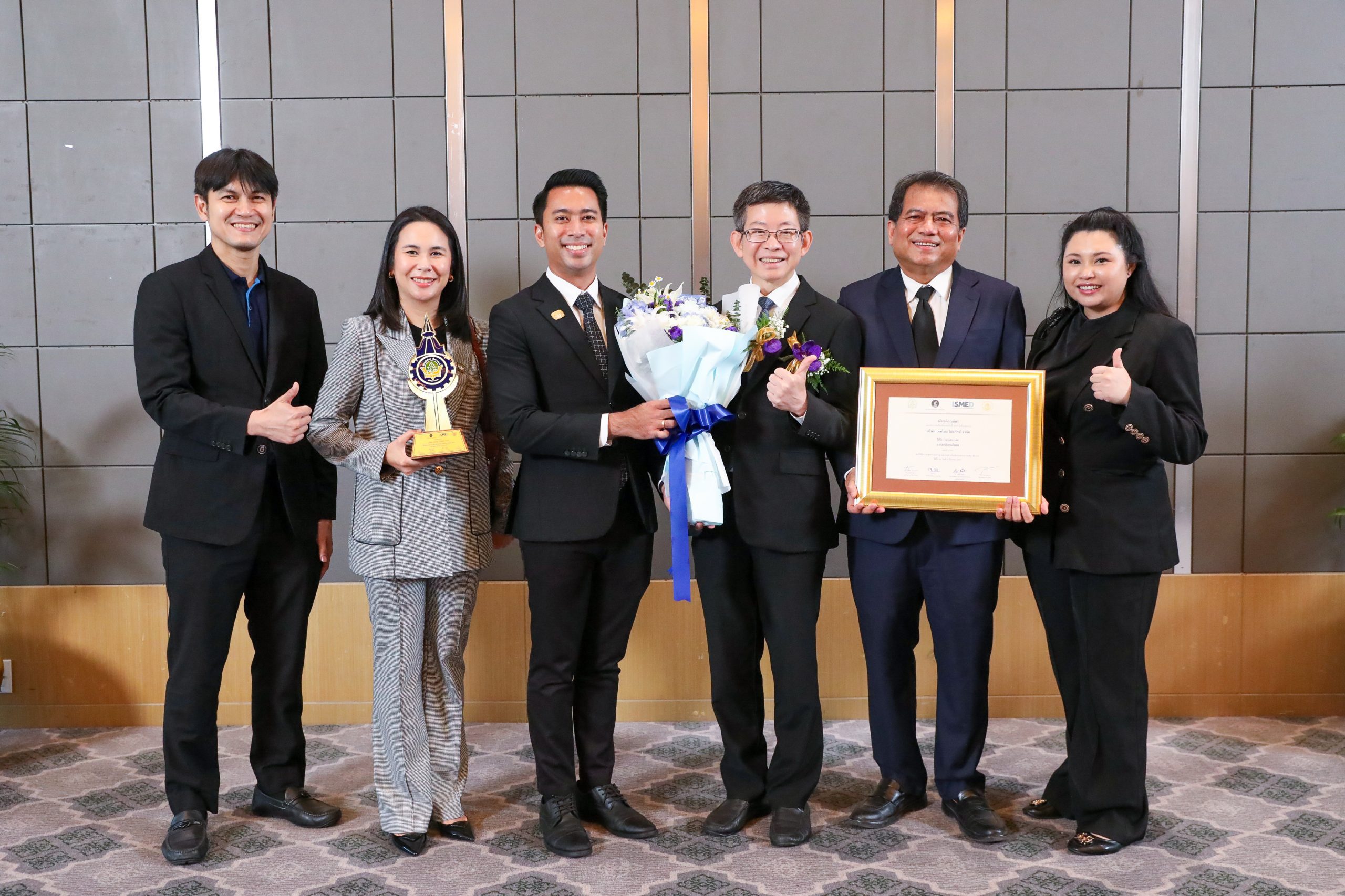 นายกอบศักดิ์ ภูตระกูล กรรมการรองผู้จัดการใหญ่ นายพิชัย จันทภาโส ผู้จัดการภาค 5 ลูกค้าธุรกิจรายปลีกต่างจังหวัด และผู้บริหารธนาคาร ร่วมแสดงความยินดีกับ บริษัทเทพไทย โปรดัคท์ จำกัด (ยาสีฟันสมุนไพรเทพไทย) ในโอกาสที่ได้รับ “รางวัลธรรมาภิบาลดีเด่น ประจำปี 2569” ซึ่งธนาคารกรุงเทพเป็นผู้เสนอชื่อเข้ารับการพิจารณา สะท้อนถึงความเชื่อมั่นของธนาคารที่มีต่อศักยภาพ และความซื่อสัตย์ในการดำเนินธุรกิจของลูกค้า โดยมี นายกร สุริยพันธุ์ กรรมการผู้จัดการ บริษัทเทพไทย โปรดัคท์ จำกัด เป็นผู้แทนเข้ารับรางวัล