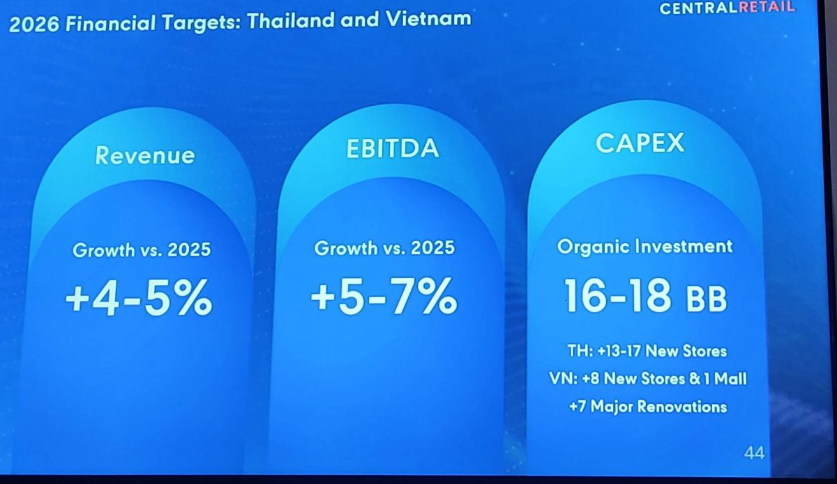 HoonSmart.com>>เซ็นทรัล รีเทล ตั้งเป้าปี 2569 รายได้โต 4-5% EBITDA เพิ่ม 5-7% ลุยลงทุน 16,000-18,000 ล้านบาท ปรับปรุงใหญ่ 7 สาขา-เปิดสาขาใหม่ในไทย-เวียดนาม 22-26 แห่ง เดินหน้ากลยุทธ์ “Innovation in Action” ผสานออนไลน์-ออฟไลน์ ดึงลูกค้าใช้จ่ายเพิ่ม เล็งขยายตลาดอาเซียนเพิ่ม ยันสงครามตะวันออกกลางกระทบต่ำ หวังรัฐเร่งมาตรการลดหนี้ครัวเรือน
