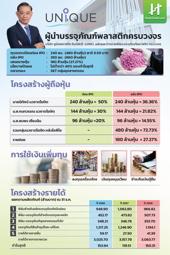HoonSmart.com >> UNIX หุ้นแห่งอนาคต ผู้นำบรรจุภัณฑ์พลาสติกยั่งยืน คุณสมบัติครบ อนาคตเติบโตดี พร้อมขายไอพีโอ 180 ล้านหุ้น ชวนฟังโรดโชว์ 19 มี.ค.นี้ คาดเปิดขายสัปดาห์หน้า