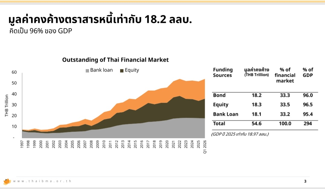 ปัจจุบัน มูลค่าตลาดตราสารหนี้ไทยถือว่ามีนัยสำคัญ โดยมีสัดส่วนสูงใกล้เคียงกับตลาดทุนมีสัดส่วนอยู่ราว 90% แต่สามารถเพิ่มศักยภาพได้อีก