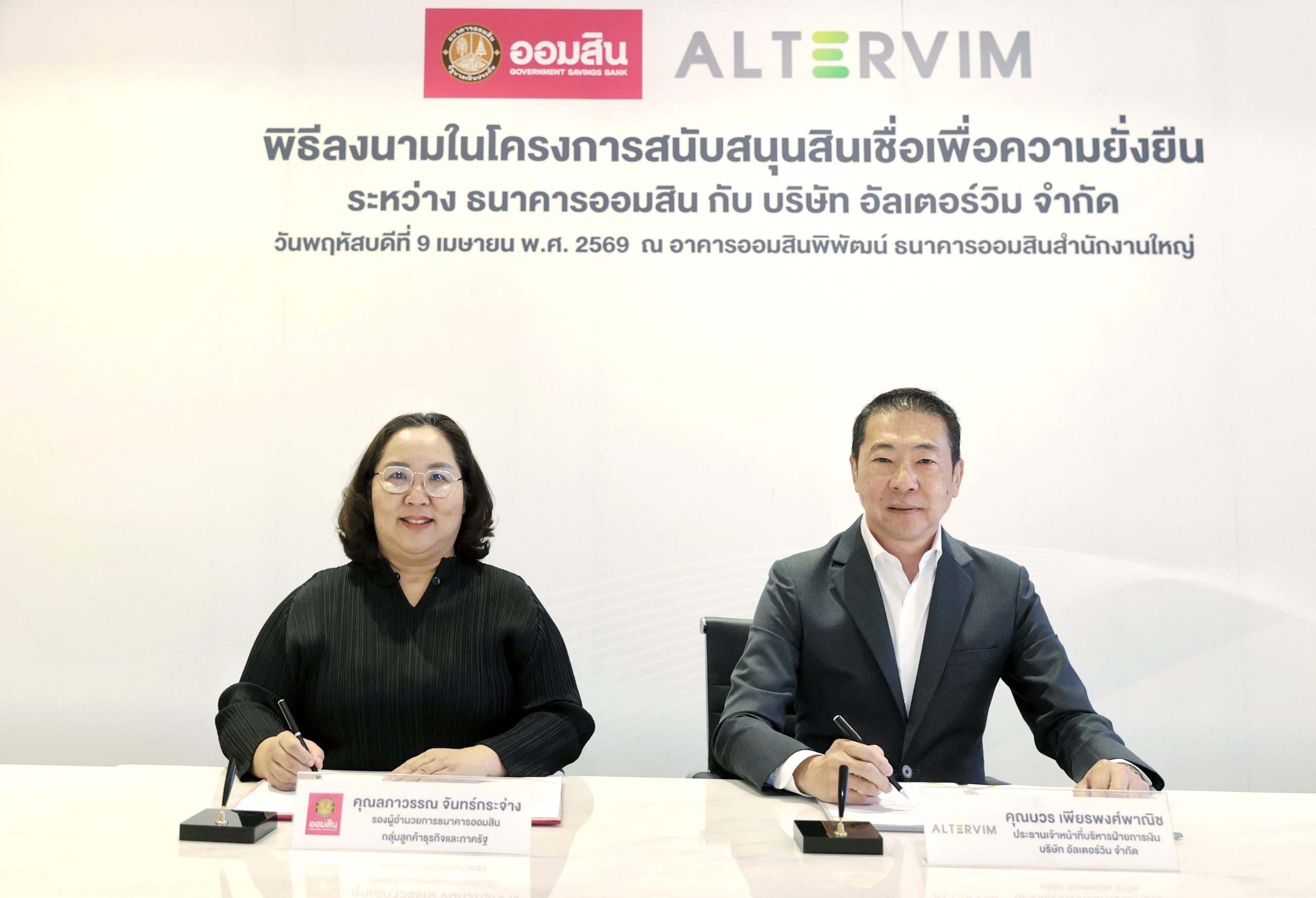ด้าน นายบวร เพียรพงศ์พาณิช ประธานเจ้าหน้าที่บริหารฝ่ายการเงิน บริษัท อัลเตอร์วิม กล่าวว่า การสนับสนุนสินเชื่อเพื่อความยั่งยืน (Green Finance) จากธนาคารออมสินครั้งนี้ บริษัทจะนำไปใช้ลงทุนในการติดตั้งระบบผลิตไฟฟ้าจากพลังงานแสงอาทิตย์และพลังงานทดแทนรูปแบบอื่น ๆ ให้กับกลุ่มบริษัท ภายใต้เครือเจริญโภคภัณฑ์ เป็นไปตามแนวทางการดำเนินธุรกิจที่รับผิดชอบต่อสังคมและเป็นมิตรกับสิ่งแวดล้อม ส่งเสริมการใช้พลังงานสะอาด ลดการปล่อยก๊าซเรือนกระจก สอดคล้องกับวิสัยทัศน์การขับเคลื่อนเป้าหมายและยุทธศาสตร์ด้านความยั่งยืนของกลุ่มเจริญโภคภัณฑ์ ในการเป็นองค์กรที่มีความเป็นกลางทางคาร์บอน (Carbon Neutrality) ภายในปี 2030 และ ลดการปล่อยก๊าซเรือนกระจกสุทธิเป็นศูนย์ (Net Zero Emissions) ภายในปี 2050