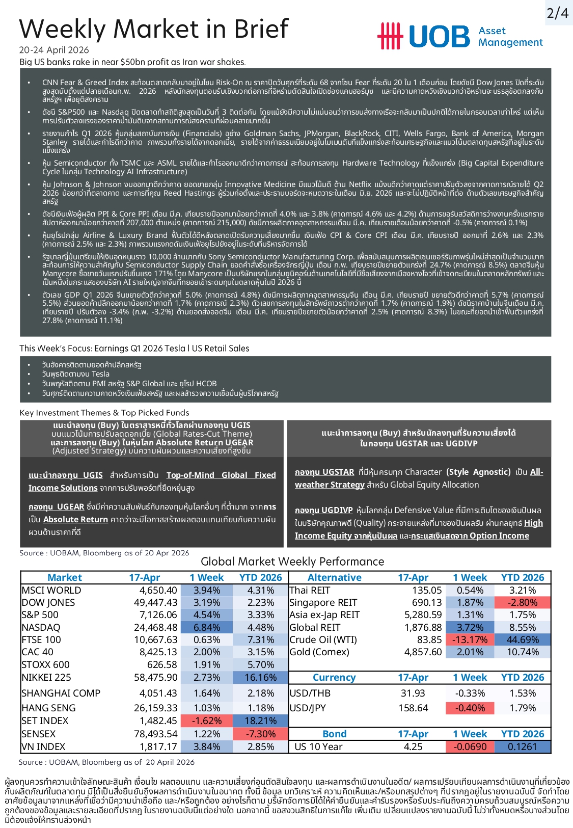 UOBAM : สัปดาห์นี้ติดตามงบ Q1 “TESLA” ยอดค้าปลีกสหรัฐฯ 21/04/2026 12:10009Breaking News, Fund Manager Facebook iconFacebookTwitter iconTwitterLINE iconLine