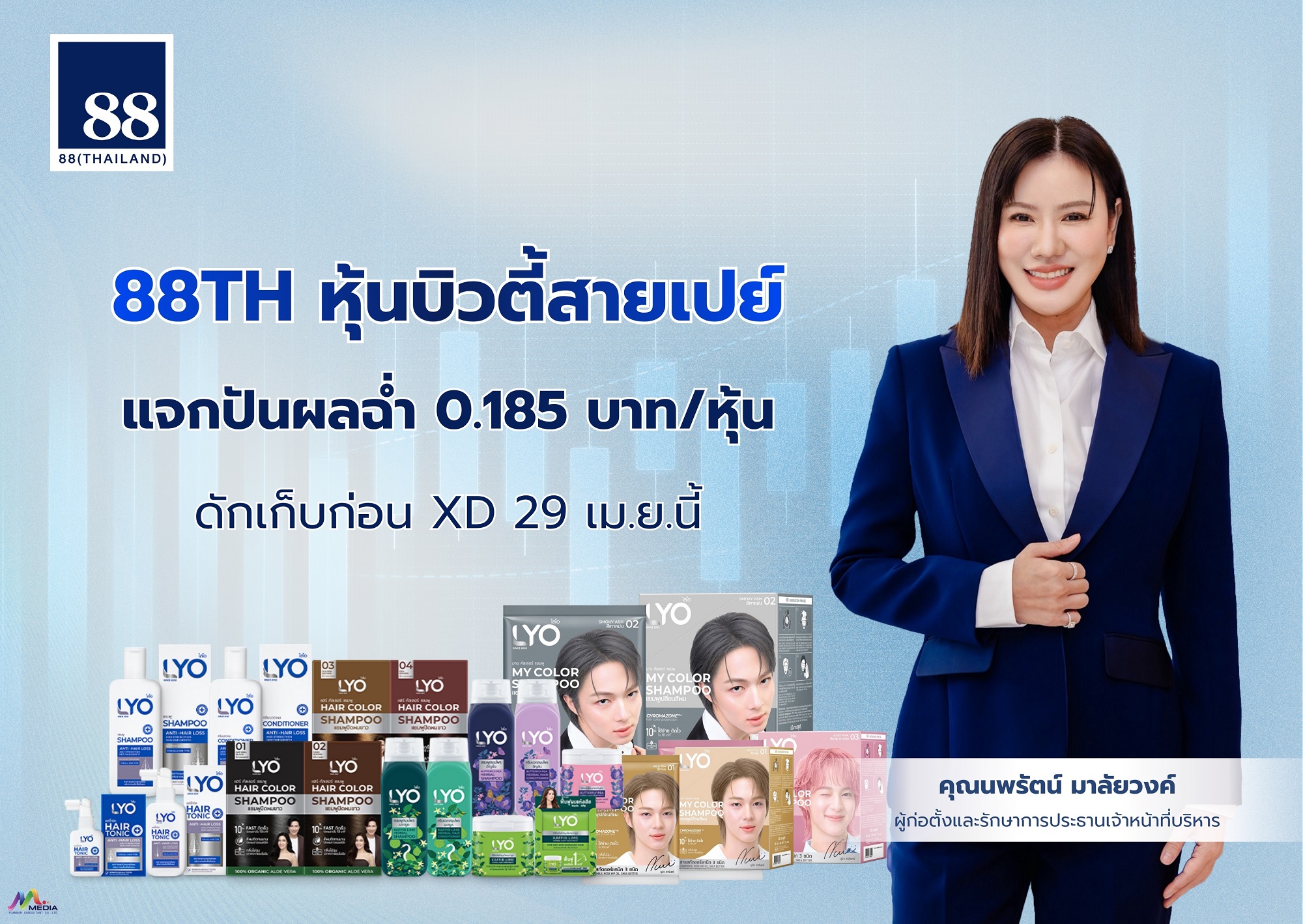 HoonSmart.com >> 88TH สายเปย์ ปันผลจุก ๆ 0.185 บาท/หุ้น สนใจปันผล ตามเก็บหุ้นก่อน XD 29 เม.ย.นี้ ส่งโปรดักส์สีผมใหม่ ควง “นุนิว” โกยยอดขาย มัดใจฐานแฟนคลับ