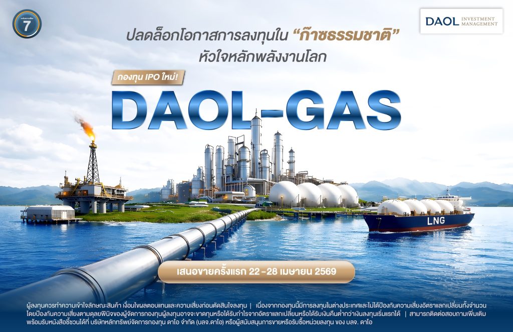 HoonSmart.com>> บลจ.ดาโอ เปิดตัว “กองทุนเปิด ดาโอ แนเชอรัล แก๊ส (DAOL-GAS)” ทางเลือกในการลงทุน “หุ้นกลุ่มก๊าซธรรมชาติสหรัฐฯ” ที่มีศักยภาพเติบโตสูง มอง “ก๊าซธรรมชาติ” เป็นหัวใจสำคัญของระบบพลังงานโลกยุคใหม่ ท่ามกลางความต้องการพลังงานที่เพิ่มขึ้นจากทั้งภาคอุตสาหกรรม เทคโนโลยี – Data Center เปิดขายครั้งแรก 22 – 28 เม.ย.69