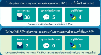 ส่วนบริษัทฯที่อยู่ในขั้นตอนการปรึกษาหารือก่อนยื่นไฟลิ่ง (นับตั้งแต่ปี 2564) สูงถึง 38 บริษัท