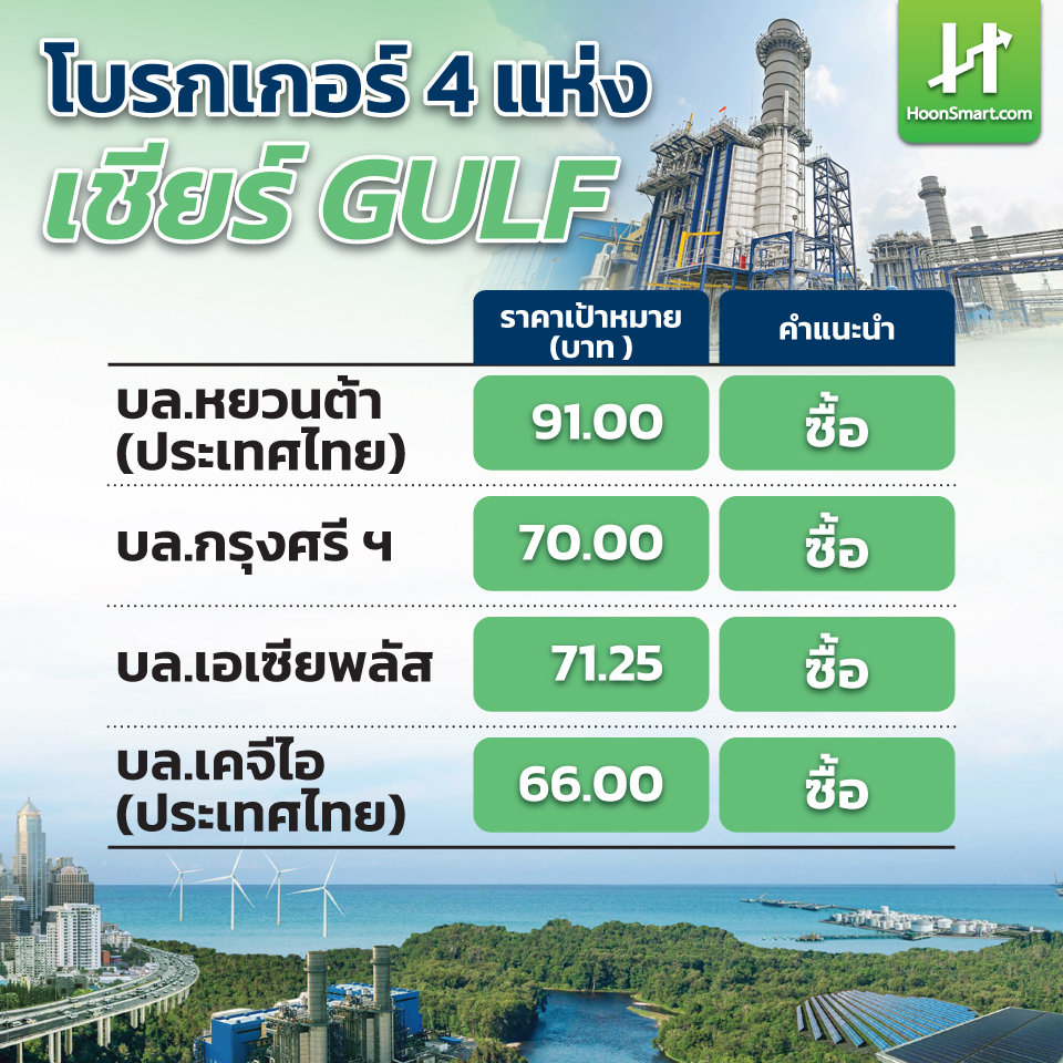 HoonSmart.com >> โบรกเกอร์ อย่างน้อย 4 แห่ง แห่เชียร์ “ซื้อ” GULF ปรับเป้าหมายสูงสุด 91 บาท มอง Q1-Q2/69 กำไรปกติ ทำ New High คาดกำไร 9 พันล. มี upside จากธุรกิจโทรคมนาคมและการขยายโรงไฟฟ้า ชู! เป็นหุ้น Top pick ของกลุ่มโรงไฟฟ้า