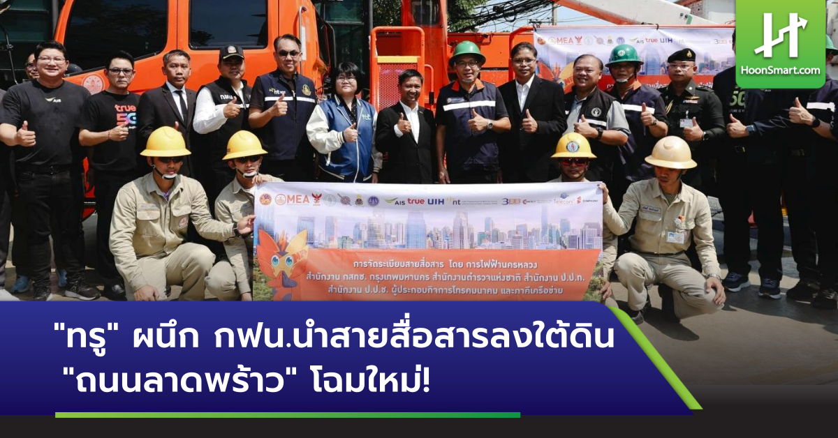 บริษัท ทรู คอร์ปอเรชั่น (TRUE) เดินหน้าสานต่อภารกิจพลิกโฉมกรุงเทพมหานคร ผนึกความร่วมมือกับ การไฟฟ้านครหลวง (MEA) กรุงเทพมหานคร สำนักงาน กสทช. สำนักงานตำรวจแห่งชาติ และพันธมิตร ลุยปฏิบัติการรื้อถอนสายสื่อสารบนเสาไฟฟ้าและนำสายสื่อสารลงใต้ดิน ถนนลาดพร้าว (ตั้งแต่ ถ.รัชดาภิเษก – ถ.ประดิษฐ์มนูธรรม) รวมระยะทางทั้ง 2 ฝั่ง 8.40 กิโลเมตร โดยมี นายราเชนทร์ อันเวช รองผู้ว่าการเทคโนโลยีดิจิทัลและระบบสื่อสาร การไฟฟ้านครหลวง (MEA) เป็นประธานในพิธี พร้อมด้วย นายประถมพงศ์ ศรีนวล ผู้อำนวยการสำนักวิชาการและการจัดการทรัพยากรโทรคมนาคม สำนักงาน กสทช. และ นายกนกศักดิ์ นิ่มนวลรัตน์ หัวหน้าฝ่ายรัฐกิจและสาธารณูปโภค บริษัท ทรู คอร์ปอเรชั่นร่วมลงพื้นที่ เร่งจัดระเบียบสายสื่อสารให้เป็นไปตามมาตรฐานสากล เพื่อคืนทัศนียภาพที่สวยงาม เสริมความปลอดภัยให้ประชาชน และวางรากฐานสู่การเป็นมหานครอัจฉริยะอย่างเป็นรูปธรรม