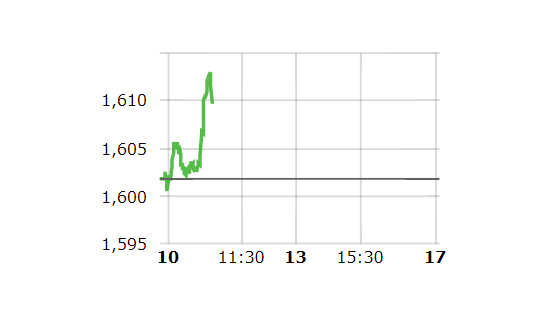 ดัชนีตลาดหลักทรัพย์ ณ เวลา 10.52 น.อยู่ที่ 1,611.64 จุด เพิ่มขึ้น 9.87 จุด หรือ 0.62% มูลค่าการซื้อขาย 19,930.48 ล้านบาท