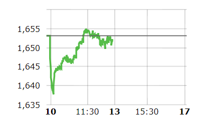ภาพรวมดัชนีเปิดตลาดปรับตัวลงแรงติดลบ 15.53 จุด ดัชนีแตะ 1,637.58 จุด ก่อนค่อยๆ รีบาวด์ขึ้นมาบวก 2.03 จุด ดัชนี 1,655.14 จุด