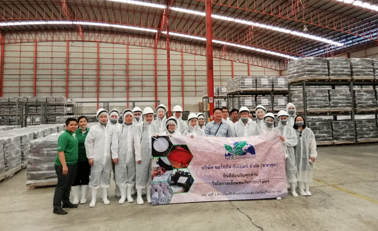 ชูวิทย์ จึงธนสมบูรณ์ (ที่ 6 จากซ้าย) ประธานเจ้าหน้าที่บริหาร บริษัท นอร์ทอีส รับเบอร์ จำกัด (มหาชน) หรือ NER ผู้ผลิตและจำหน่ายผลิตภัณฑ์ยางพาราธรรมชาติแปรรูป พร้อมด้วยณัฐิยา ภัทรกิจจานุรักษ์ (ที่ 4 จากซ้าย) ผู้ช่วยกรรมการผู้จัดการ บริษัท แอสเซท โปร แมเนจเม้นท์ จำกัด ในฐานะที่ปรึกษาทางการเงิน ให้การต้อนรับคณะกลุ่มนักวิเคราะห์หลักทรัพย์ ในโอกาสเข้าเยี่ยมชมกิจการ NER พร้อมฟังข้อมูลเกี่ยวกับแผนการดำเนินธุรกิจของบริษัท ปี 2562 ณ โรงงานจังหวัดบุรีรัมย์ เมื่อเร็วๆนี้