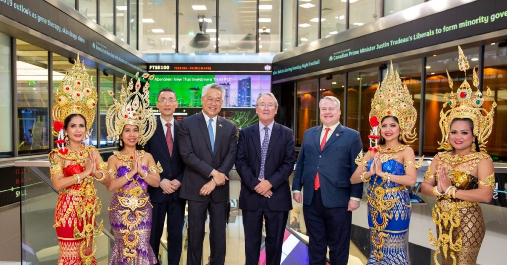เมื่อวันที่ 22 ต.ค. 2562 ณ เวลา 8.00 น. ที่ตลาดหลักทรัพย์กรุงลอนดอน ได้มี พิธีฉลองครบรอบ 30 ปี การเปิดขายกองทุน Aberdeen New Thai Investment Trust โดยมีนาย Nicolas Smith ประธานบริหารกองทุน Aberdeen New Thai Investment Trust นายออเสน การบริสุทธิ์ ผู้จัดการกองทุน Aberdeen New Thai Investment Trust พร้อมทั้งเอกอัครราชทูตพิษณุ สุวรรณะชฎ เอกอัครราชทูตไทยประจำสหราชอาณาจักร และนาย Martin Gilbert ประธานบริหารกองทุน Aberdeen Standard Investments ซึ่งเป็นประธานบริหารกองทุนตั้งแต่จัดตั้งเมื่อ30ปีก่อน เข้าร่วมพิธี