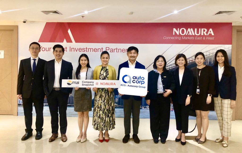 ภานุมาศ รังคกูลนุวัฒน์ ประธานเจ้าหน้าที่บริหาร และนุชนาถ สกุลสันเทียะ ผู้จัดการส่วนบัญชีและการเงิน บมจ.ออโตคอร์ป โฮลดิ้ง หรือ ACG ร่วมให้ข้อมูลในกิจกรรม mai company snapshot ให้กับเจ้าหน้าที่การตลาดของบริษัทหลักทรัพย์โนมูระ พัฒนสิน ซึ่งเป็นโครงการที่ตลาดหลักทรัพย์ เอ็ม เอ ไอ (mai) จัดทำขึ้น เพื่อให้นักลงทุนได้เข้าถึงข้อมูลที่สำคัญของบริษัทจดทะเบียนในรูปแบบกระชับและเข้าใจง่าย โดยมีทีมผู้บริหาร บล.โนมูระ พัฒนสิน ให้การต้อนรับ ณ ศูนย์ CNS คอนเวนชั่น เซ็นเตอร์ อาคารไทยวา