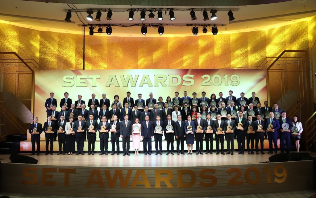 ชัยวัฒน์ วิบูลย์สวัสดิ์ ประธานกรรมการ , ภากร ปีตธวัชชัย กรรมการและผู้จัดการ ตลาดหลักทรัพย์แห่งประเทศไทย พร้อม สันติ วิริยะรังสฤษฎ์ ประธานบรรณาธิการ วารสารการเงินธนาคาร แสดงความยินดีกับบริษัทและผู้บริหารที่ได้รับรางวัล SET Awards 2019 โดยกลุ่มรางวัล Business Excellence ผู้บริหารสูงสุดยอดเยี่ยม ได้แก่ ระเฑียร ศรีมงคล ประธานเจ้าหน้าที่บริหาร บริษัท บัตรกรุงไทย และ สุวรรณา โชคดีอนันต์ ประธานเจ้าหน้าที่บริหาร บริษัท มุ่งพัฒนา อินเตอร์แนชชั่นแนล ส่วนรางวัลผู้บริหารสูงสุดรุ่นใหม่ ได้แก่ พีระพงศ์ จรูญเอก ประธานเจ้าหน้าที่บริหาร บริษัท ออริจิ้น พร็อพเพอร์ตี้ และกลุ่มรางวัล Sustainability Excellence 8 บริษัทได้แก่ บริษัท บ้านปู บริษัท บางจาก คอร์ปอเรชั่น บริษัท ซีเฟรชอินดัสตรี บริษัท ไออาร์พีซี บริษัท พีทีที โกลบอล เคมิคอล บริษัท สมบูรณ์ แอ๊ดวานซ์ เทคโนโลยี บริษัท ปูนซิเมนต์ไทย และบริษัท ไทยออยล์