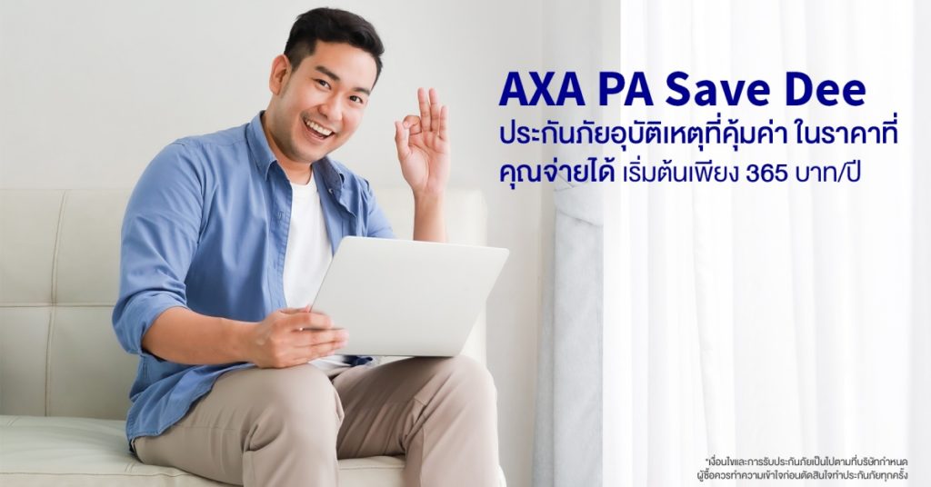 บริษัท แอกซ่าประกันภัย จำกัด (มหาชน) แนะนำ “พีเอ เซฟดี” กรมธรรม์ประกันภัยอุบัติเหตุ ที่ไม่เพียงคุ้มครองกรณีเสียชีวิต สูญเสียอวัยวะ สายตา การรับฟังเสียง การพูดออกเสียงหรือทุพพลภาพถาวรเท่านั้น แต่ยังคุ้มครองไปถึงกรณีถูกทำร้ายร่างกายหรือทำให้ถึงแก่ชีวิตอีกด้วย โดยเบี้ยประกันภัยเริ่มต้นเพียงวันละ 1 บาทเท่านั้น