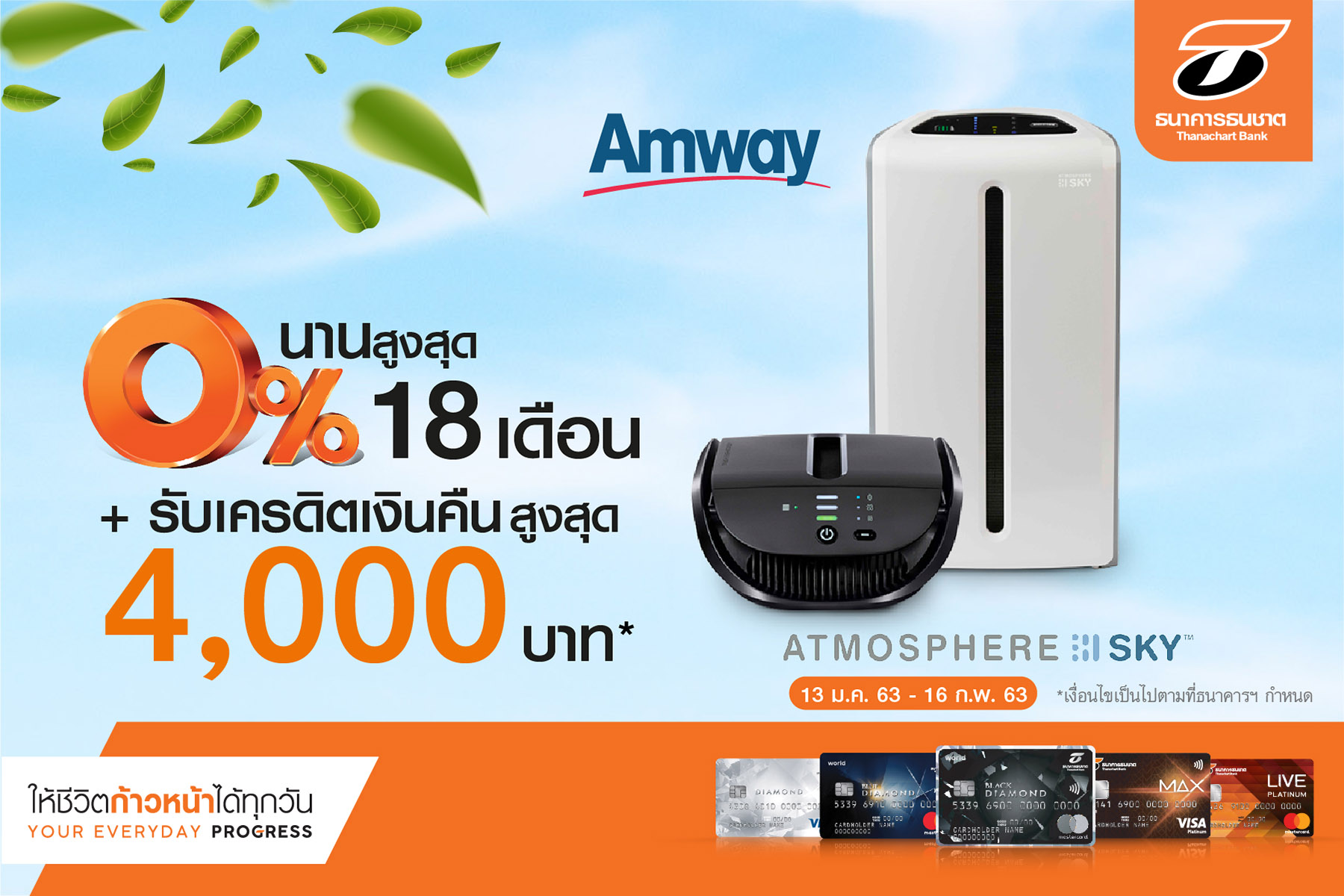 ธนาคารธนชาต ร่วมกับแอมเวย์ (Amway) มอบสิทธิพิเศษให้ลูกค้าบัตรเครดิตธนชาต และบัตรสินเชื่อบุคคล FLASH Plus ซื้อเครื่องกรองอากาศแอทโมสเฟียร์ สกาย (Atmosphere Sky) และ เครื่องกรองอากาศในรถยนต์แอทโมสเฟียร์ ไดรฟ์ (Atmosphere Drive) รับสิทธิพิเศษ 2 ต่อ