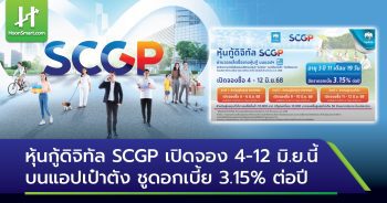 HoonSmart.com>> “SCGP-แบงก์กรุงไทย” พร้อมเสนอขาย “หุ้นกู้ดิจิทัล SCGP ครั้งที่ 1/2568” อายุ 3 ปี 11 เดือน 19 วัน ดอกเบี้ย 3.15% ต่อปี วงเงินรวม 2,000 ล้านบาท ผ่านบริการซื้อขายหุ้นกู้บนแอปพลิเคชันเป๋าตัง ให้สิทธิผู้ถือหุ้นกู้ดิจิทัลเดิม SCGP256A จองซื้อก่อน ลงทุนเริ่มต้นเพียง 10,000 บาท “จองก่อน ได้ก่อน” เปิดจองซื้อ 4-12 มิ.ย.68