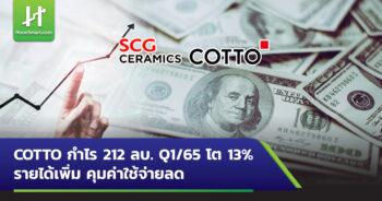 HoonSmart.com>>หุ้น COTTO พุ่ง 7.34% หล้งโชว์กำไร Q1/65 อยู่ที่ 212 ล้านบาท เติบโต 13% จากงวดปีก่อน กวาดรายได้จากการขาย 3,231 ล้านบาท เพิ่มขึ้น 15% จากความต้องการสินค้าเพิ่มขึ้นอย่างต่อเนื่อง ส่งผลให้ปริมาณการขายกระเบื้องเซรามิกทั้งในประเทศและส่งออกเพิ่มขึ้น 13% ราคาขายเฉลี่ยเพิ่มขึ้น 2% และบริหารจัดการค่าใช้จ่ายด้านการบริหารได้ดี ปรับปรุงประสิทธิภาพการผลิตต่อเนื่อง ช่วยลดผลกระทบต้นทุนการผลิตสูงขึ้นจากราคาน้ำมันและวัตถุดิบพุ่ง