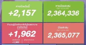 HoonSmart.com>> ศบค.เผยยอดติดเชื้อโควิดรายใหม่รักษาตัวในโรงพยาบาล เพิ่มขึ้น 1,962 ราย หายป่วยกลับบ้าน 2,157 ราย ผู้ป่วยปอดอักเสบ รักษาตัวอยู่ในโรงพยาบาล 920 ราย เสียชีวิตเพิ่ม 32 ราย