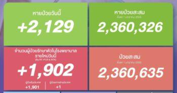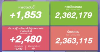 HoonSmart.com>> ศบค. เผยยอดติดเชื้อโควิด-19 รายใหม่รักษาตัวในโรงพยาบาลเพิ่มขึ้น 2,480 ราย หายป่วยกลับบ้าน 1,853 ราย เสียชีวิต 37 ราย