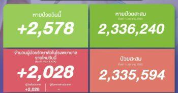 HoonSmart.com>>ศบค.รายงานพบผู้ติดเชื้อเพิ่ม 2,028 ราย หายป่วยกลับบ้าน 2,578 ราย เสียชีวิต 18 ราย