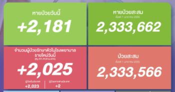 HoonSmart.com>> ศบค.เผยยอดติดเชื้อโควิดรายใหม่เพิ่มขึ้น 2,025 ราย หายป่วยกลับบ้าน 2,181 ราย เสียชีวิต 20 ราย