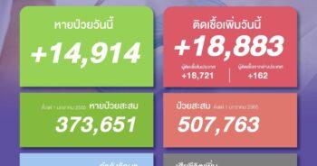 HoonSmart.com>> ศบค.เผยผู้ติดเชื้อโควิดรายใหม่วันนี้พุ่ง 18,883 ราย เดินทางมาจากต่างประเทศ 162 ราย ยอดหายป่วยกลับบ้าน 14,914 ราย เสียชีวิตเพิ่ม 32 ราย