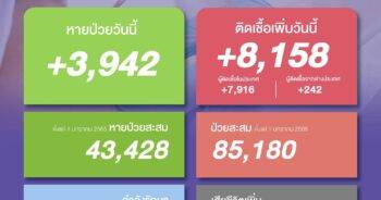 HoonSmart.com>> ศบค.พบผู้ติดเชื้อโควิดราย 8,158 ราย เดินทางมาจากต่างประเทศ 242 ราย ยอดหายป่วยกลับบ้าน 3,942 ราย เสียชีวิต 15 ราย