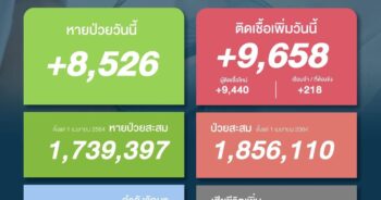 HoonSmart.com>> ศบค.พบผู้ติดเชื้อโควิดรายใหม่เพิ่ม 9,658 ราย หายป่วยกลับบ้าน 9,532 ราย เสียชีวิต 84 ราย