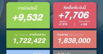 HoonSmart.com>> ศบค.พบผู้ติดเชื้อโควิดรายใหม่เพิ่ม 8,675 ราย หายป่วยกลับบ้าน 9,532 ราย เสียชีวิต 66 ราย