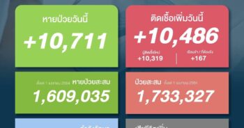 HoonSmart.com>> ศบค.พบผู้ติดเชื้อโควิดรายใหม่เพิ่ม 10,486 ราย หายป่วยกลับบ้าน 10,711 ราย เสียชีวิต 94 ราย