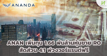 HoonSmart.com>> “อนันดา ดีเวลลอปเม้นท์” เพิ่มทุนจดทะเบียน 1,666 ล้านหุ้น เสนอขายผู้ถือหุ้นเดิม (RO) อัตราส่วน 4 หุ้นเดิมต่อ 1 หุ้นใหม่ ราคาหุ้นละ 1.55 บาท พร้อมฟรีวอร์แรนต์ ANAN-W1 จำนวน 833.25 ล้านหน่วย ระดมทุนนำเงินใช้หมุุนเวียนกิจการ