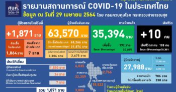 HoonSmart.com>>ศบค. เผยพบผู้ติดเชื้อโควิด-19 รายใหม่เพิ่ม 1,871 ราย จากระบบเฝ้าระวังและบริการ 1,830 ราย เดินทางจากต่างประเทศ 34 ราย เสียชีวิต 10 ราย สถานการณ์ผู้ป่วยติดเชื้อทั่วโลก 150.21 ล้านราย