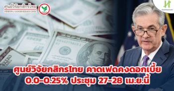 HoonSmart.com>> “ศูนย์วิจัยกสิกรไทย” คาดเฟดยังคงดอกเบี้ยที่ระดับ 0.0-0.25% ในการประชุมวันที่ 27-28 เม.ย.นี้ มองเศรษฐกิจสหรัฐฯ ส่งสัญญาณฟื้นตัวได้ดีหลังเร่งฉีดวัคซีน คาดเฟดคงจุดยืนด้านนโยบายแบบผ่อนคลายไปจนถึงสิ้นปีนี้ รอดูสถานการณ์ปีหน้า