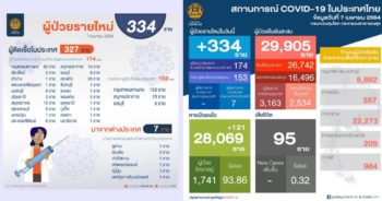 HoonSmart.com>> ศบค. เผยพบผู้ติดเชื้อโควิด-19 รายใหม่เพิ่ม 334 ราย ติดเชื้อจากระบบเฝ้าระวัง และบริการ 174 ราย ตรวจเชิงรุก 153 ราย เดินทางจากต่างประเทศ 7 ราย