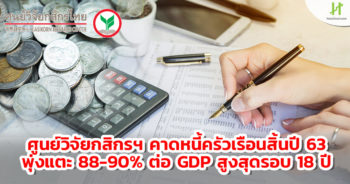 HoonSmart.com>> ศูนย์วิจัยกสิกรไทย คาดหนี้ครัวเรือนสิ้นปี 63 พุ่งแตะ 88-90% ต่อ GDP สูงสุดรอบ 18 ปี แนะแบงก์เร่งผลักดันมาตรการช่วยเหลือ ฝ่าวิกฤตโควิด-19