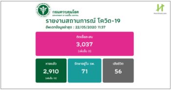 HoonSmart.com>> ไทยไม่พบผู้ติดเชื้อโควิด-19 รายใหม่เพิ่ม ยอดสะสม 3,037 ราย ไม่มีผู้เสียชีวิตเพิ่ม