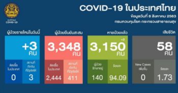 HoonSmart.com>> ศบค. เผยพบผู้ติดเชื้อโควิด-19 รายใหม่เพิ่ม 3 ราย คนไทยเดินทางกลับจากบังคลาเทศ อินเดีย และสหรัฐอเมริกา ด้านสถานการณ์ทั่วโลกพุ่งต่อเนื่องแตะ 19.80 ล้านราย สหรัฐฯ สูงสุด 5.1 ล้านราย