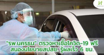 HoonSmart.com>> รพ.นครธน ผนึกสำนักงานหลักประกันสุขภาพแห่งชาติ (สปสช.) ตอบสนองนโยบาย “ค้นหาผู้มีความเสี่ยงรับเชื้อให้เร็วที่สุด” ตามหลักการ เจอเร็ว รักษาเร็ว อัตราการเสียชีวิตต่ำ เชิญคนไทยทุกคน ทุกสิทธิ์การรักษา ที่เป็นกลุ่มเสี่ยง และมีอาการสงสัย ตามเกณฑ์ที่กระทรวงสาธารณสุขกำหนด ตรวจหาเชื้อโควิด-19 ฟรี ไม่เสียค่าใช้จ่าย รู้ผลเร็วภายใน 6 ชั่วโมง