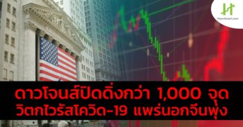 HoonSmart.com>> ดัชนีดาวโจนส์ปิดดิ่งกว่า 1,000 จุด วิตกไวรัสโควิด-19 แพร่ระบาดจากจีนไปประเทศอื่นต่อเนื่อง กระทบเศษฐกิจโลก ฉุดตลาดหุ้นยุโรป ราคาน้ำมันดิบร่วง
