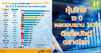 HoonSmart.com>> ตลาดหลักทรัพย์ฯ ชูหุ้นไทยระยะยาว 13 ปีย้อนหลัง แจกผลตอบแทน 143% สูงติด 1 ใน 5 เมื่อเทียบตลาดหลักของโลก ด้านตลาดหุ้นเดือนส.ค.ดัชนีร่วง 3.3% จากเดือนก่อนหน้าตามทิศทางตลาดภูมิภาค ผลกระทบสงครามการค้า ประท้วงที่ฮ่องกง Brexit เทียบต้นปีดัชนียังบวก 5.8% อัตราเงินปันผลตอบแทนสูง 3.11% เทียบตลาดหุ้นเกิดใหม่เฉลี่ย 2.95%