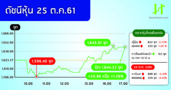 ตลาดหุ้นวันที่ 25 ต.ค.2561 ดัชนีปิดที่ 1,644.33 จุด เพิ่มขึ้น 20.96 จุด หรือ +1.29% มูลค่าการซื้อขาย 76,086.34 ล้านบาท