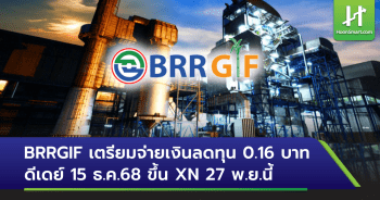 BRRGIF เตรียมจ่ายเงินลดทุน 0.16 บาท ดีเดย์ 15 ธ.ค.68 ขึ้น XN 27 พ.ย.นี้