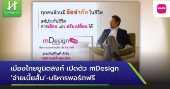 HoonSmart.com>>เมืองไทยประกันชีวิต เพิ่มตัวช่วยสร้างพอร์ตชีวิตของคุณให้เติบโตอย่างมั่นคง ด้วยประกันชีวิตควบการลงทุน mDesign จ่ายเบี้ยสั้น รับความคุ้มครองยาวถึงอายุ 99 ปี การันตีคุ้มครองชีวิตระหว่างช่วงเวลาชำระเบี้ย